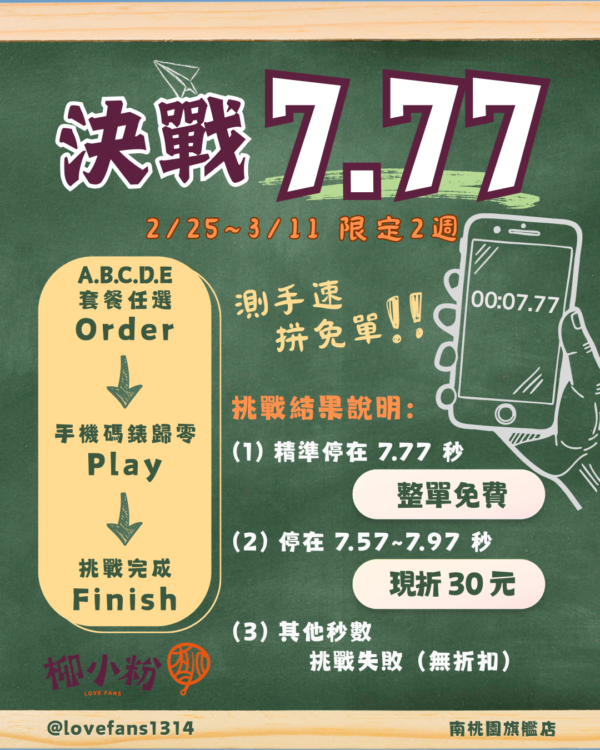 決戰7.77秒!!成功者免單